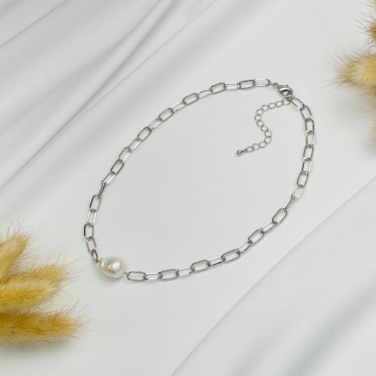 Чокер на цепочке с Жемчугом, 10 мм, необработанный, Китай