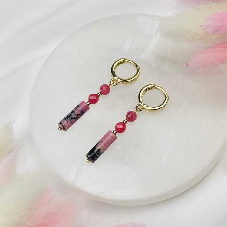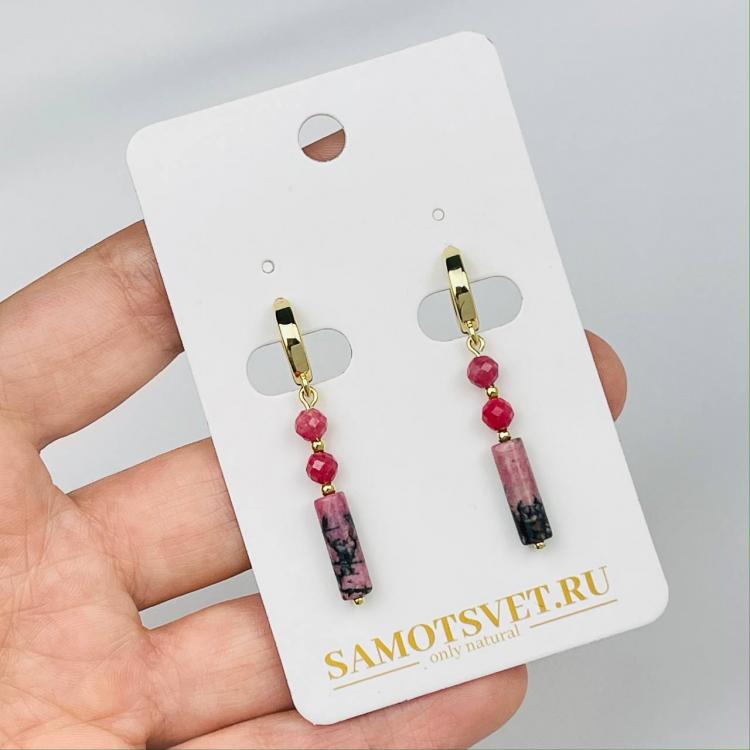 Серьги из Родонита, 4 мм, гладкий/Граненый, кольцевой замок, США