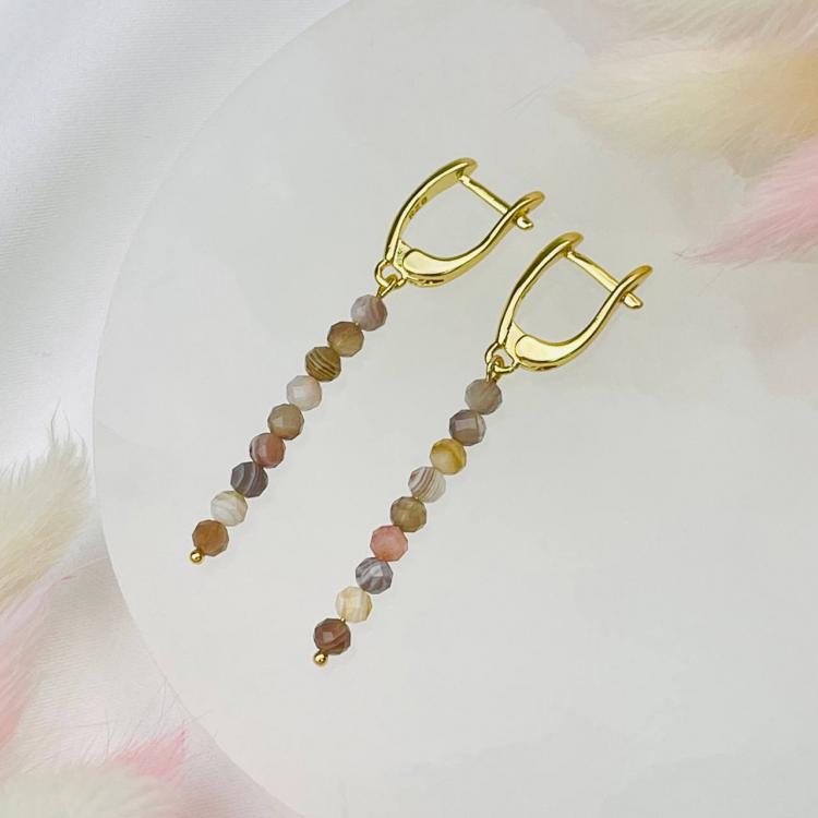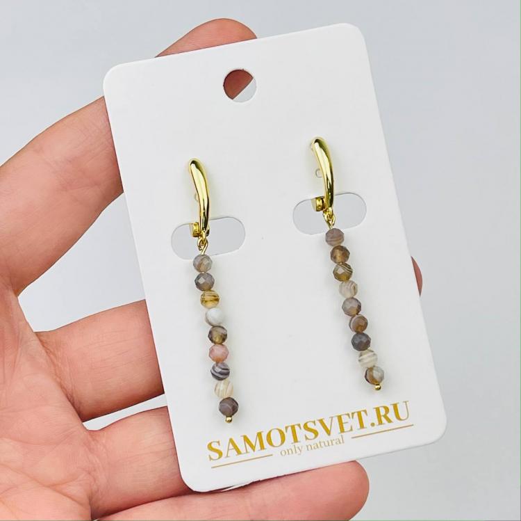 Серьги длинные из ботсванского Агата, 4 мм, граненый, английский замок, Ботсвана