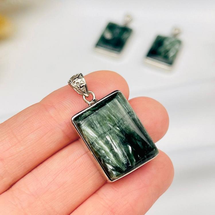 Кулон из камня Серафинит, 17х22 мм, серебро (покр), Россия