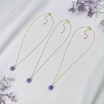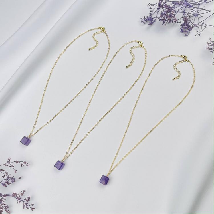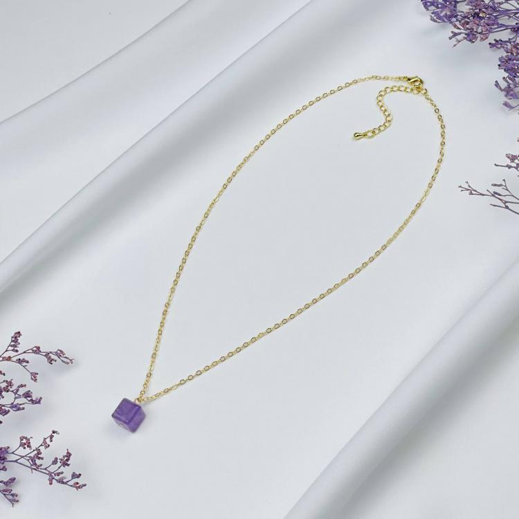 Кулон на цепочке из Аметиста, 9х9 мм, золото 14К, Бразилия