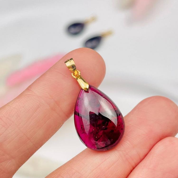 Кулон из Граната, 13х18 мм, золото 18К, Индия