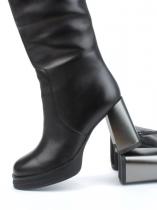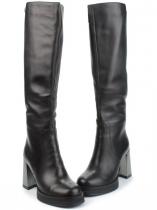 Сапоги зимние женские из натуральной кожи с натуральным мехом и байкой (еврозима) Артикул: 02-B6236-6051Z-9BM-1 BLACK Основной материал: натуральная кожа. Вид кожи основного материала: гладкая. Каблук: танкетка.