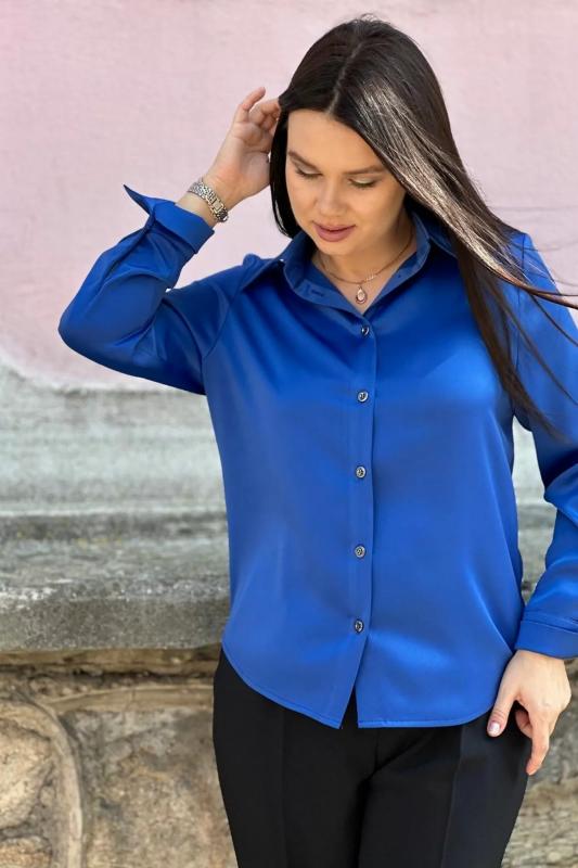 Блузка из плотной шёлковой ткани прямого свободного силуэта. Длина изделия по спинке-66 см.