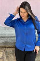 Блуза из шелка с коротким рукавом и классическим кроем S.O.L O Me М-738 синий