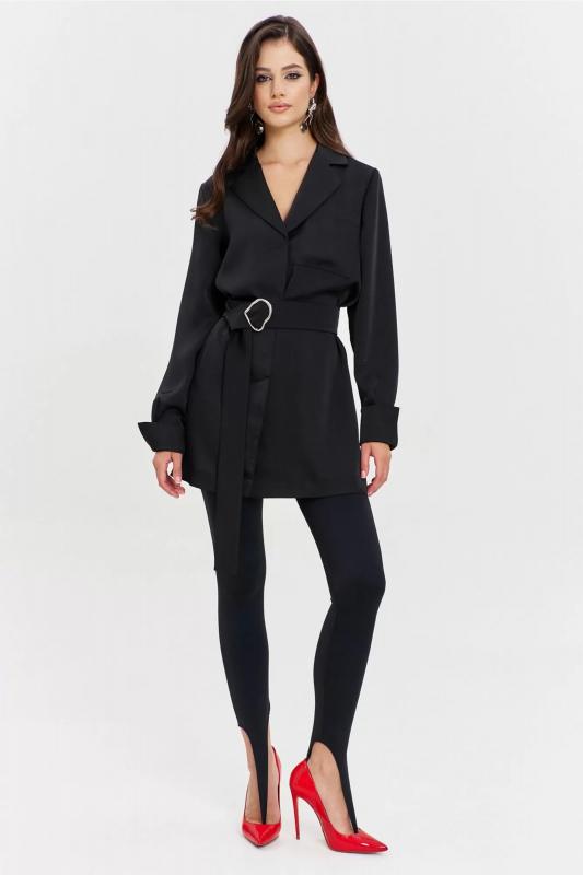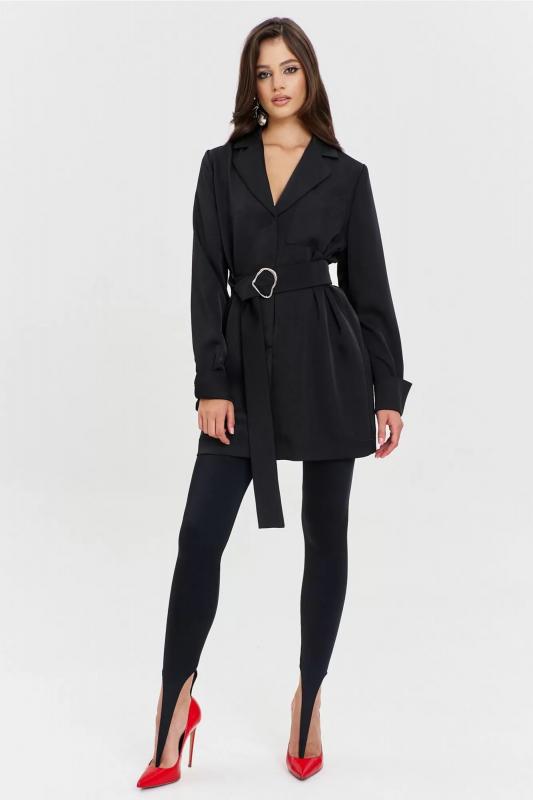 Круглогоднее черное платье свободного кроя с разрезом и поясом RINKA 1345-1 черный