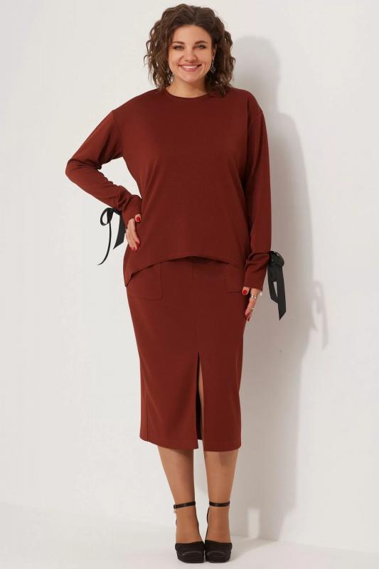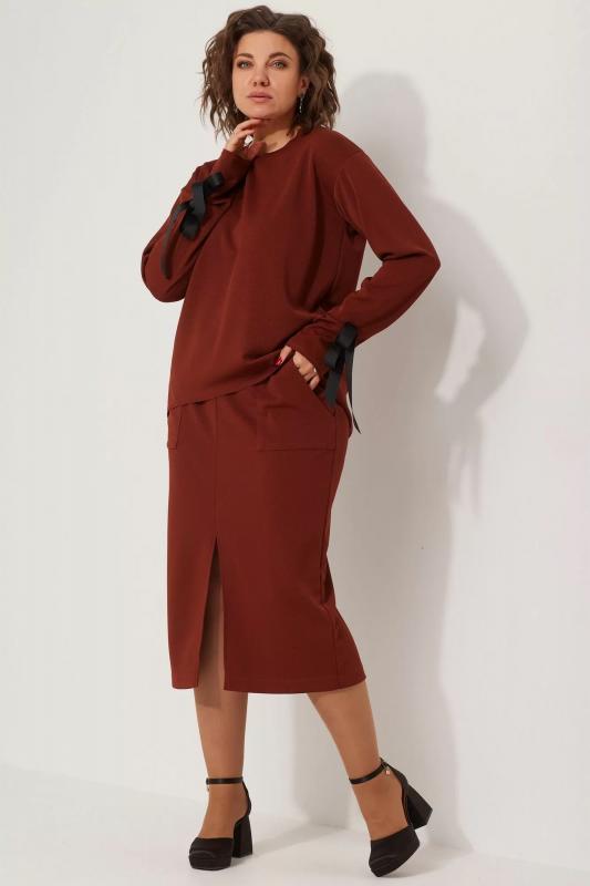 Демисезонный комплект свитшот и юбка в стиле casual BegiModa 3078 терракот