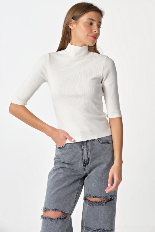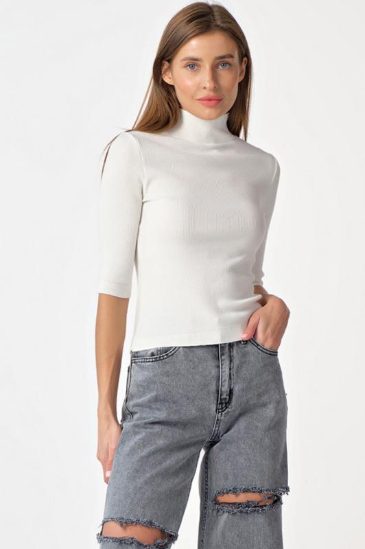 Джемпер вязаный облегающий с горлом молочный