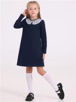 ШКОЛА ДЕВОЧКИ. платье 1ДПД1186258;темно-синий77, Ажурный воротник на темном