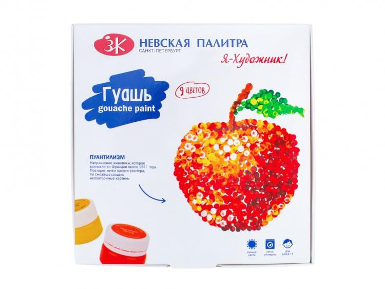 Гуашевые краски «Невская палитра» созданы специально для детского творчества и декоративно-оформительских работ. Они легко наносятся на бумагу и картон. При высы- хании приобретают матовую, бархатистую поверхность, легко размываются водой. В составе набора представлены 9 классических цветов в баночках. На крышке каждой баночки наклеены этикетки с указанием цвета (соответствующие цвету краски) , поэтому даже самые нетерпеливые не перепутают баночки и крышки после окончания творческого процесса. Перед применением краску перемешать. Храните краски в плотно закрытой таре. При попадании красок на кожу смойте водой. Для детей старше 3 лет. Внимание! Дети до трех лет должны находиться под наблюдением взрослых. Состав: наполнитель, декстрин, вода, пигмент, добавки. Состав набора: белая, желтая, охра, красная, розовая, синяя, зеленая тёмная, коричневая, черная. Картонная коробка, 9 пластиковых банок с краской по 20 мл. Качество красок соответствует ТУ 2331-027-05751640-2005. Набор соответствует ТО-063-2019. Гарантийн