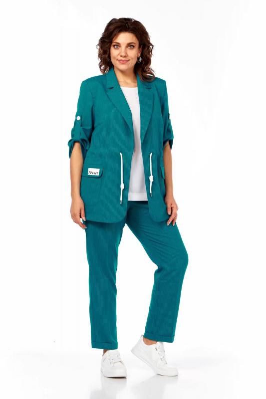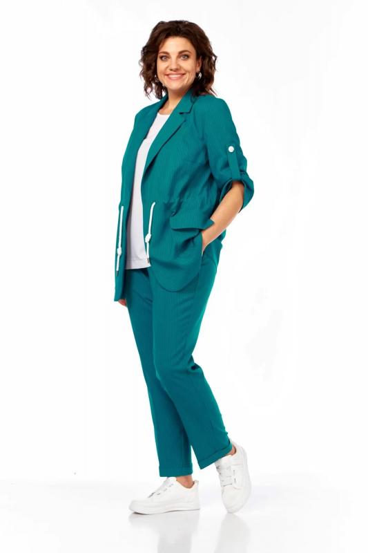Блуза, брюки, жакет Ольга Стиль С-944 бирюза_полоска