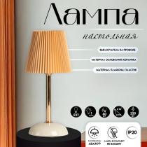 Настольная лампа с абажуром RISALUX «Лира», 1×40 Вт, Е27, белый/золото/бежевый, 15×15×32.5 см