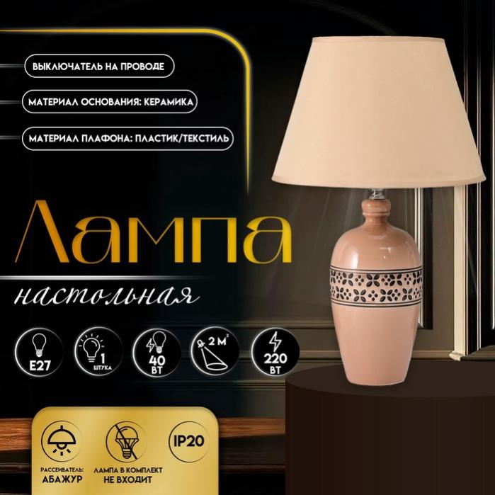 Настольная лампа с абажуром RISALUX «Эпика», Е27, 40 Вт, 28×28×44.5 см