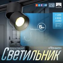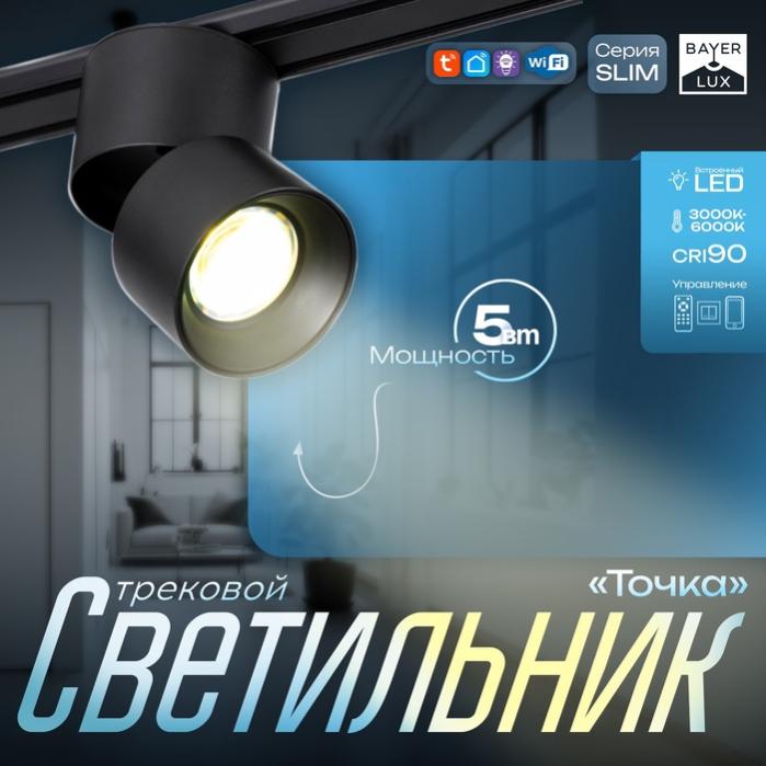 Светильник трековый BayerLux SLIM «Точка», LED, 5 Вт, 3000K-6000К, 48 В, CRI90, 8×8×9.5 см, чёрный