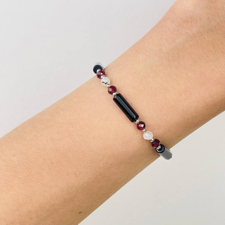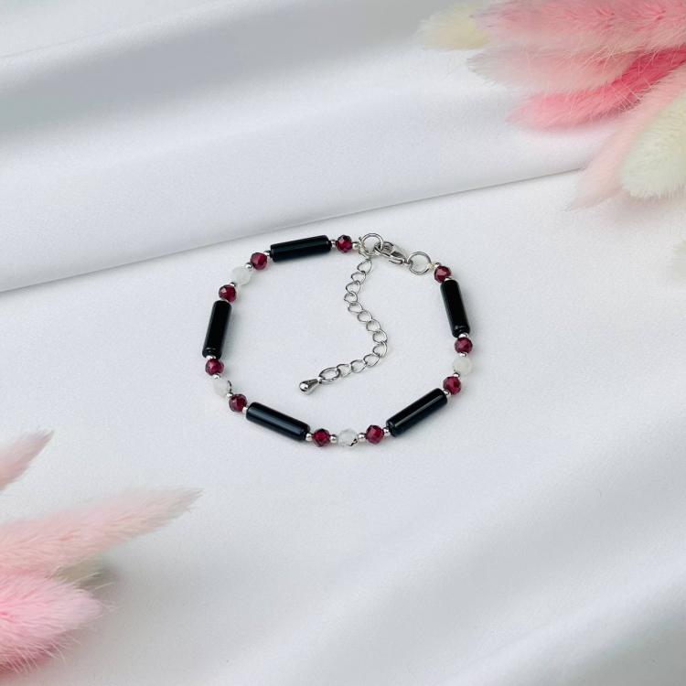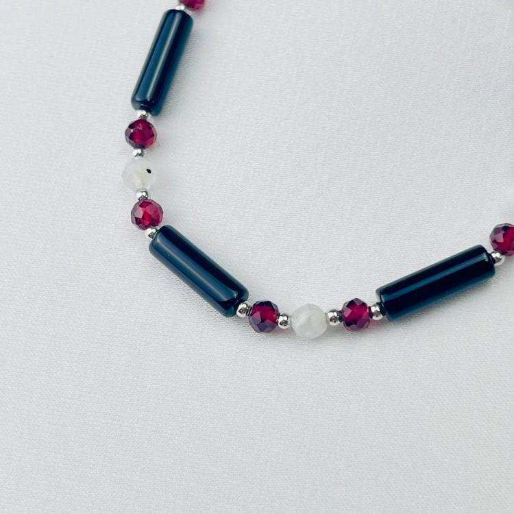 Браслет Агата, Граната и Лунного камня, 16 см + – 18 см +, 4 мм, гладкий/Граненый, Бразилия