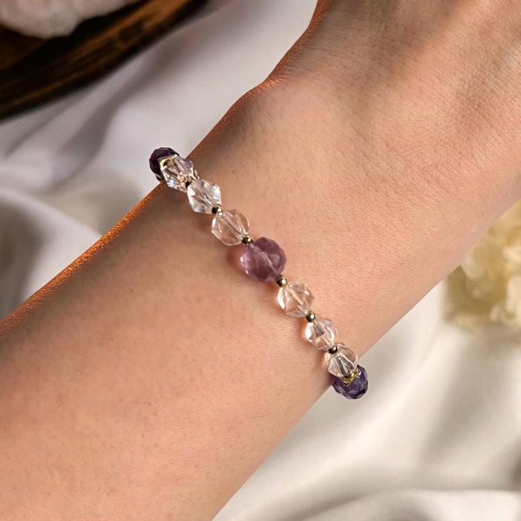 Браслет из Аметиста и Горного Хрусталя, 16 см + – 17,5 см +, 5-5,5 мм, граненый, Бразилия