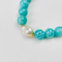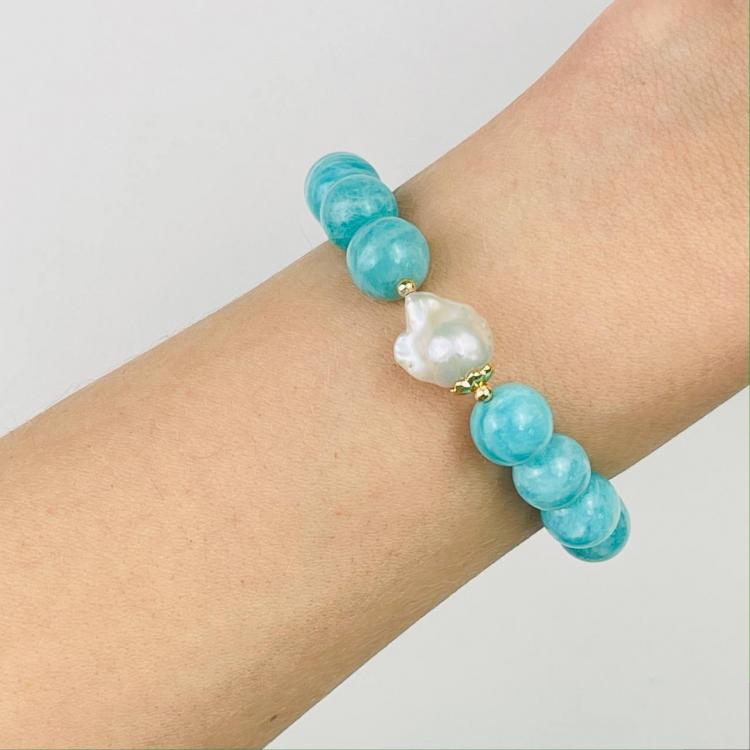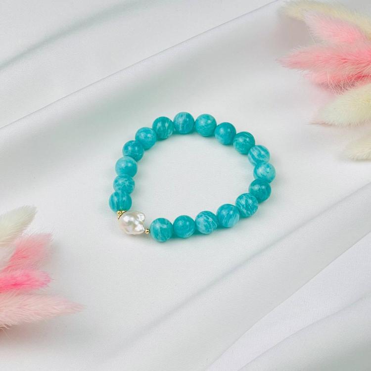 Браслет из Амазонита и Жемчуга, 16 см – 18 см, 10 мм, гладкий/Необработанный, Перу