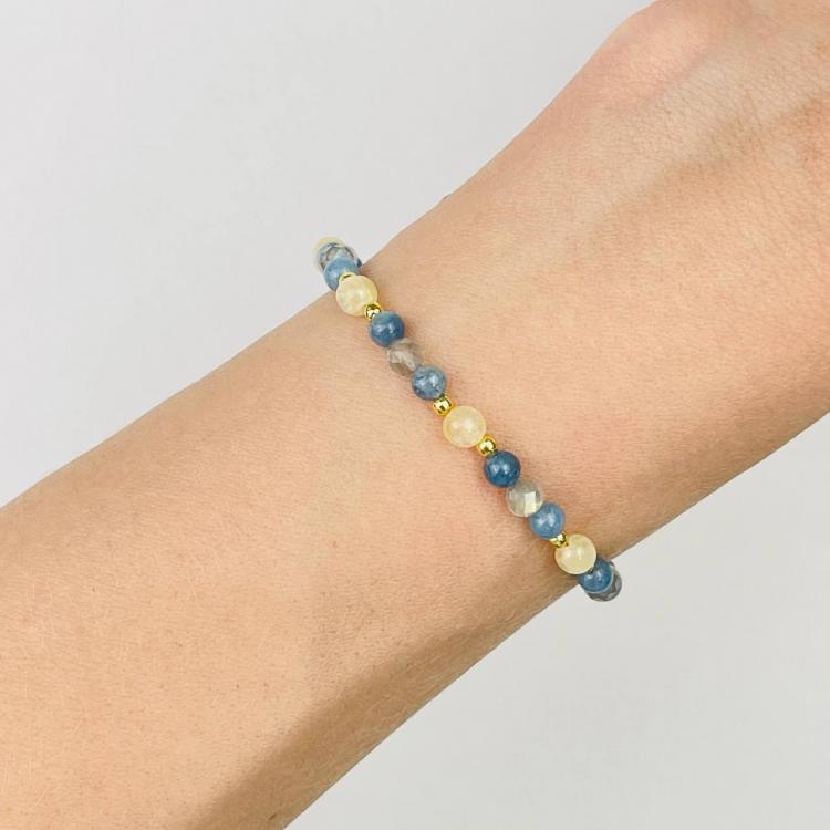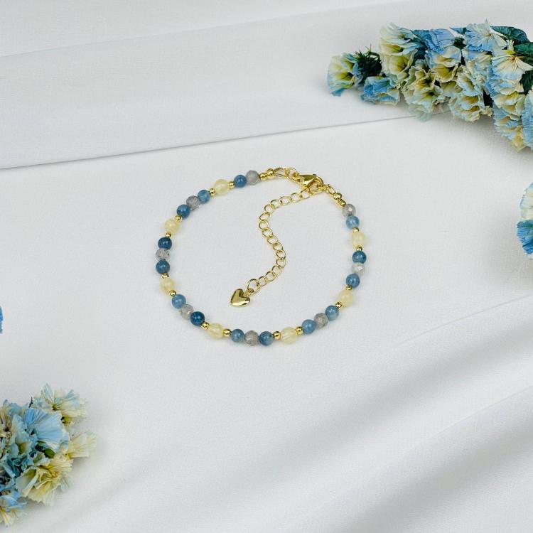 Браслет из Лабрадора, Селенита и Аквамарина, 16,5 см + – 18 см +, 4-4,5 мм, гладкий/Граненый, Мадагаскар