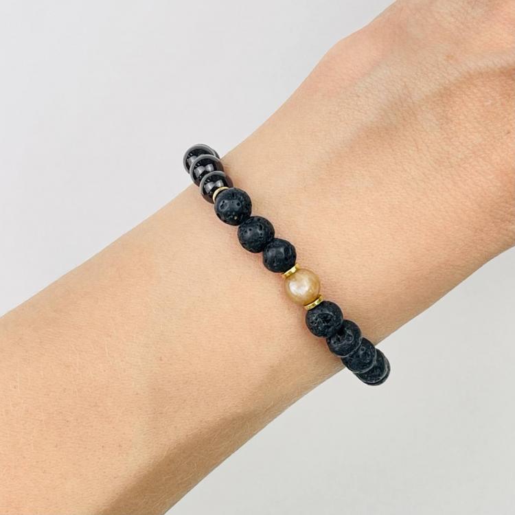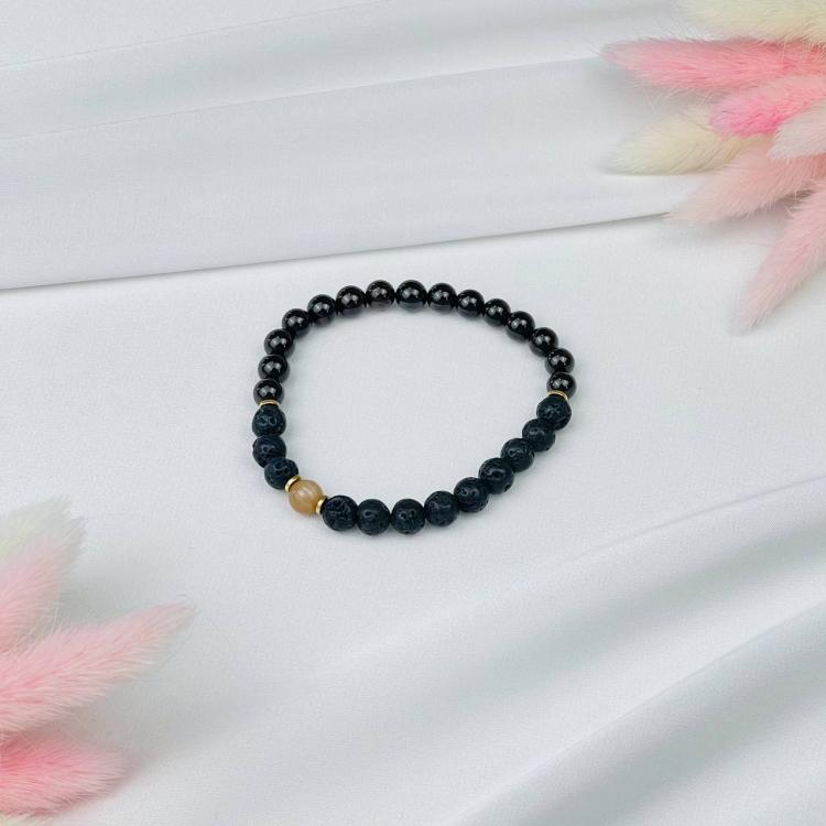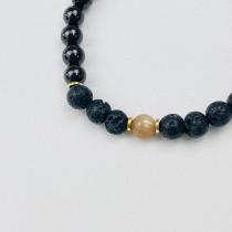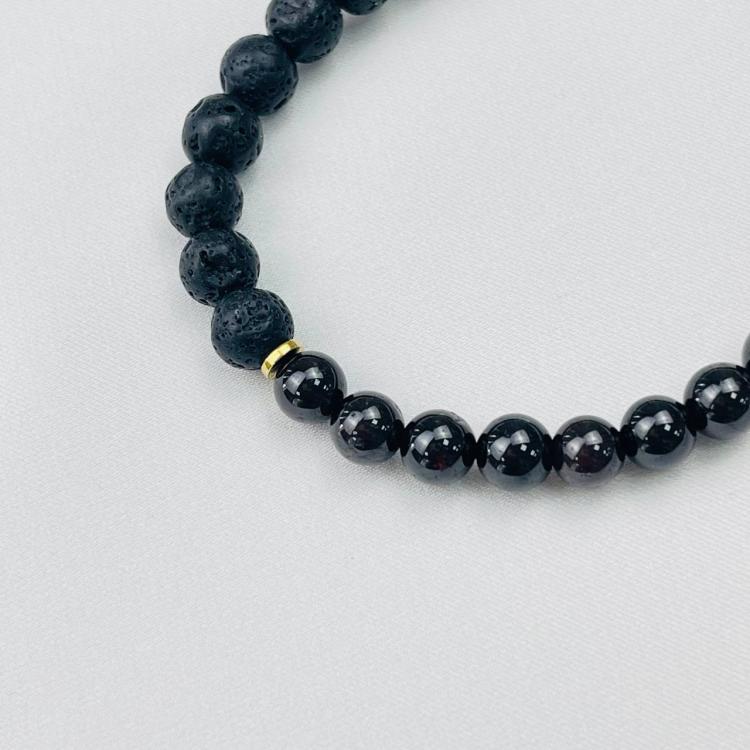 Браслет "Стихия Огонь" из Граната, Лавы и Солнечного камня, 16 см – 18 см, 6-6,5 мм, гладкий/Необработанный, Индия