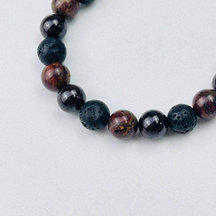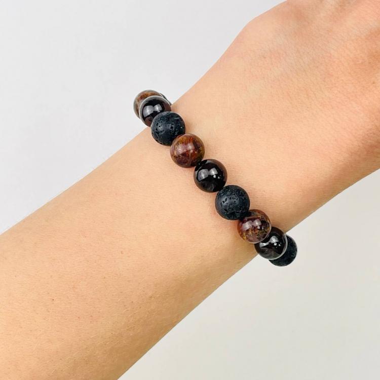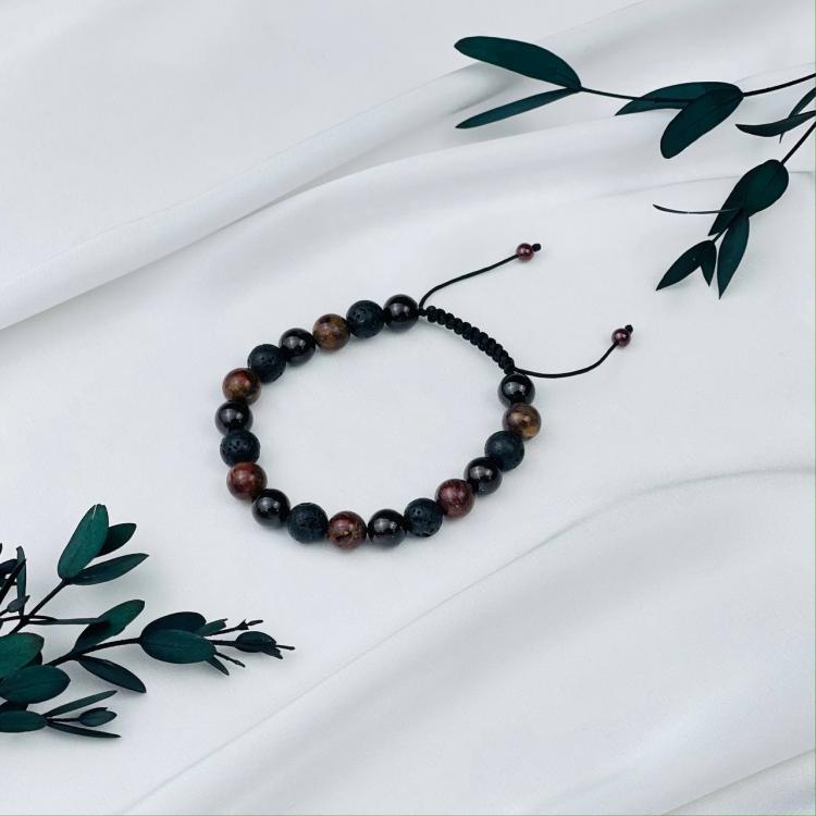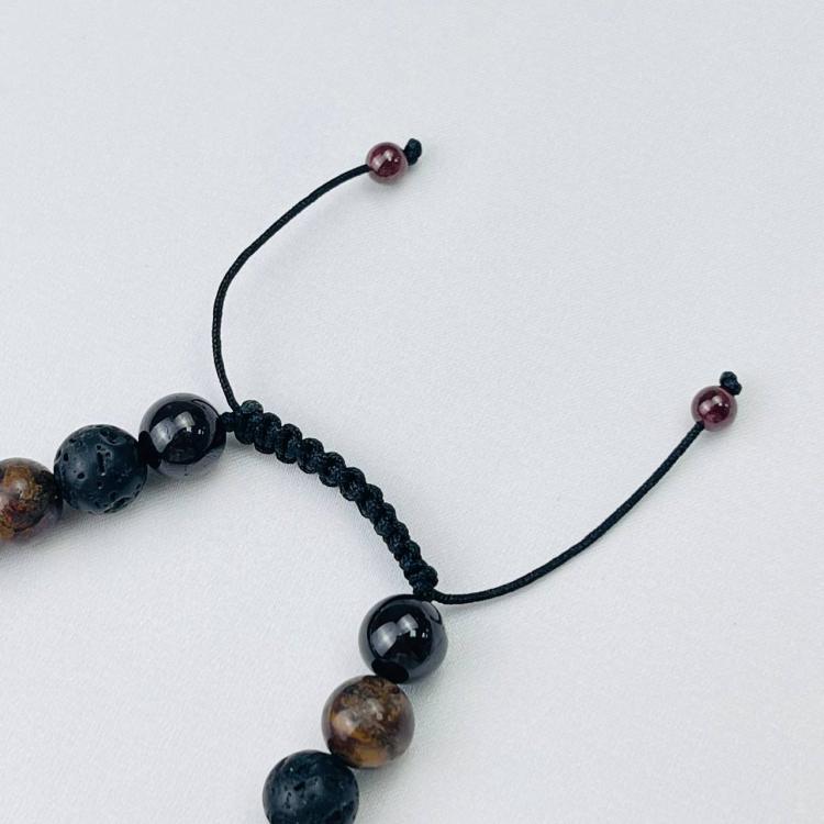 Браслет регулируемый "Стихия Огонь" из Граната, Лавы и Петерсита, от 20 см, 8-8,5 мм, гладкий/Необработанный, Индия