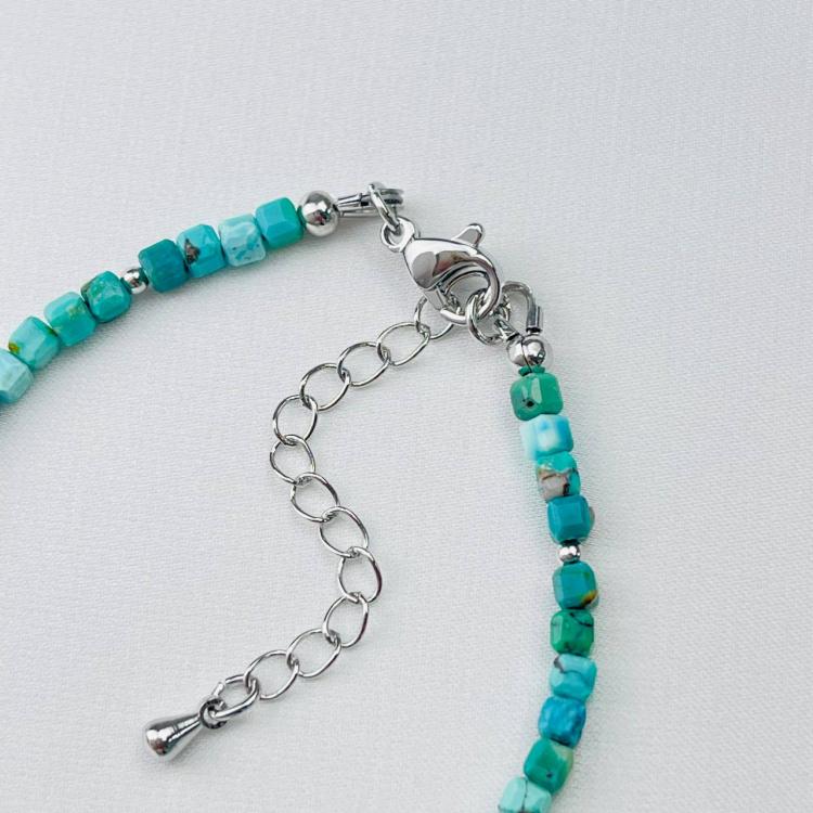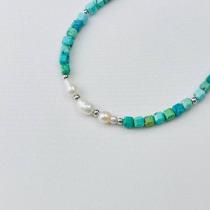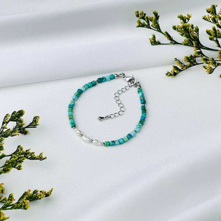 Браслет из Бирюзы и Жемчуга, 16,5 см + – 18,5 см +, 3,5 мм , граненный/Необработанный, Хубэй