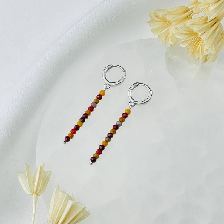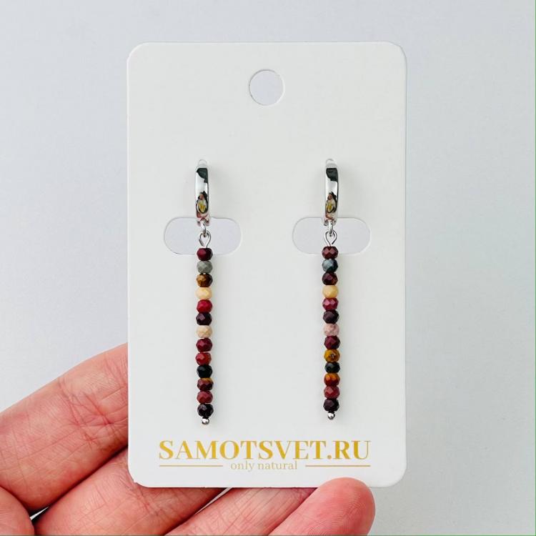 Серьги длинные из Яшмы (Мукаит), граненый, кольцевой замок, Австралия