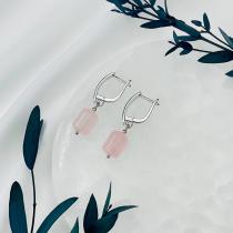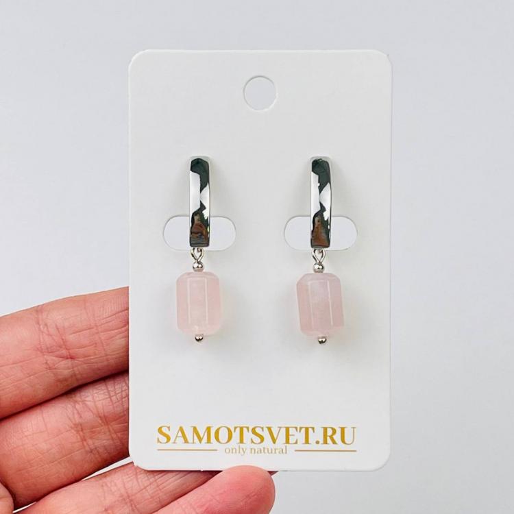 Серьги из мадагаскарского Розового кварца, гладкий/Граненый, английский замок, Мадагаскар