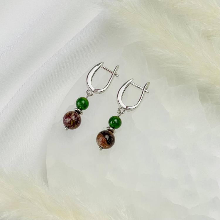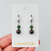Серьги из уральской Яшмы и Нефрита, 6-8,5 мм, гладкий, Россия