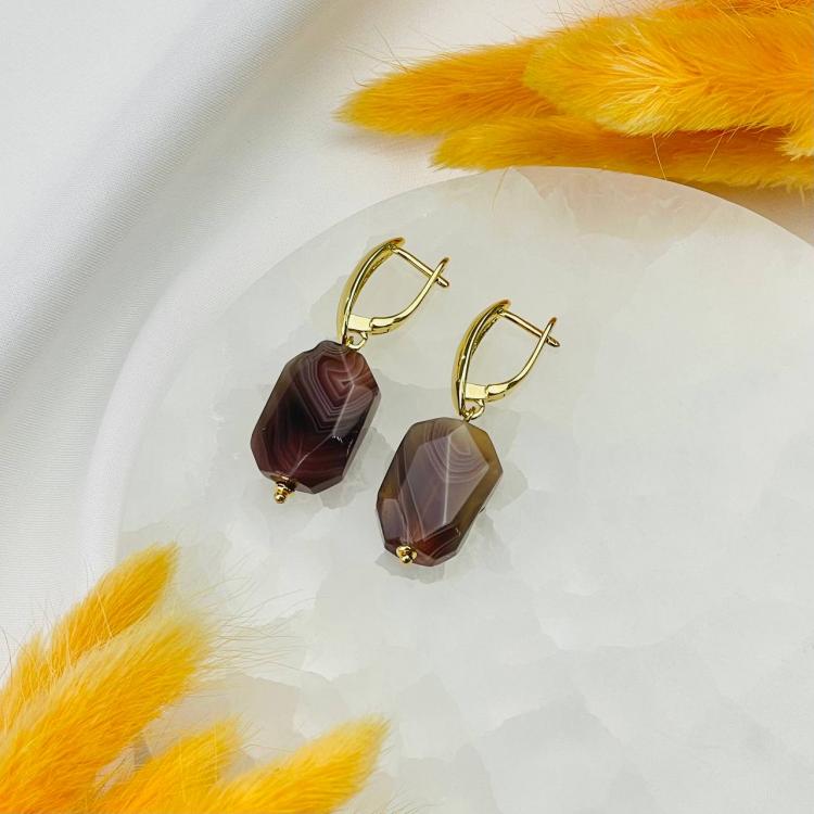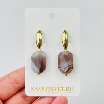 Серьги из ботсванского Агата, гладкий/Граненый, английский замок, Ботсвана