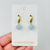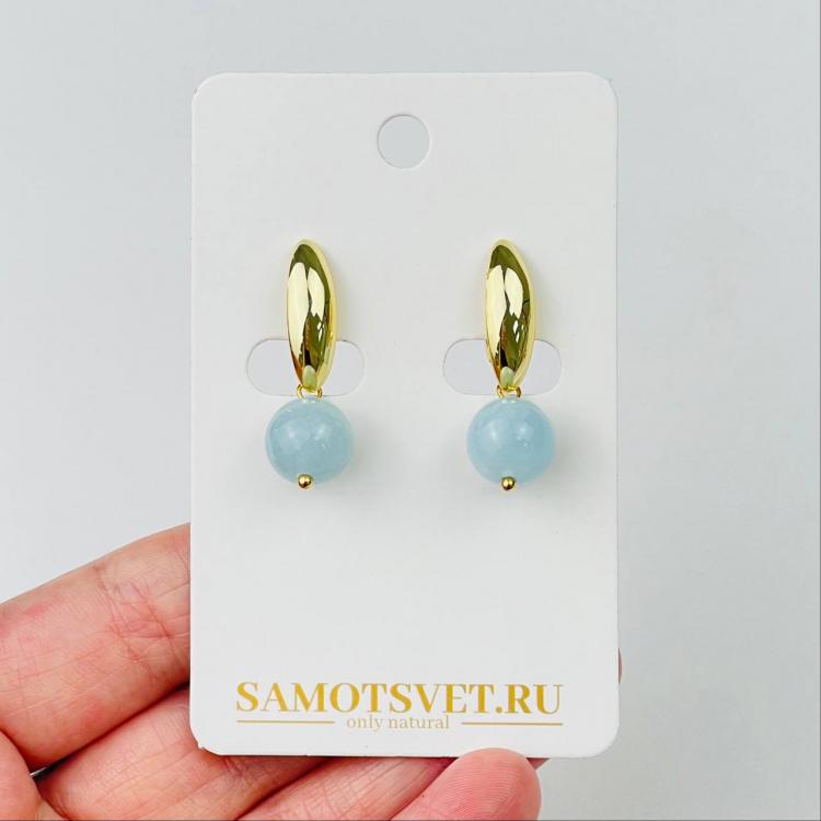 Серьги из Аквамарина, 10 мм, гладкий, английский замок, Бразилия