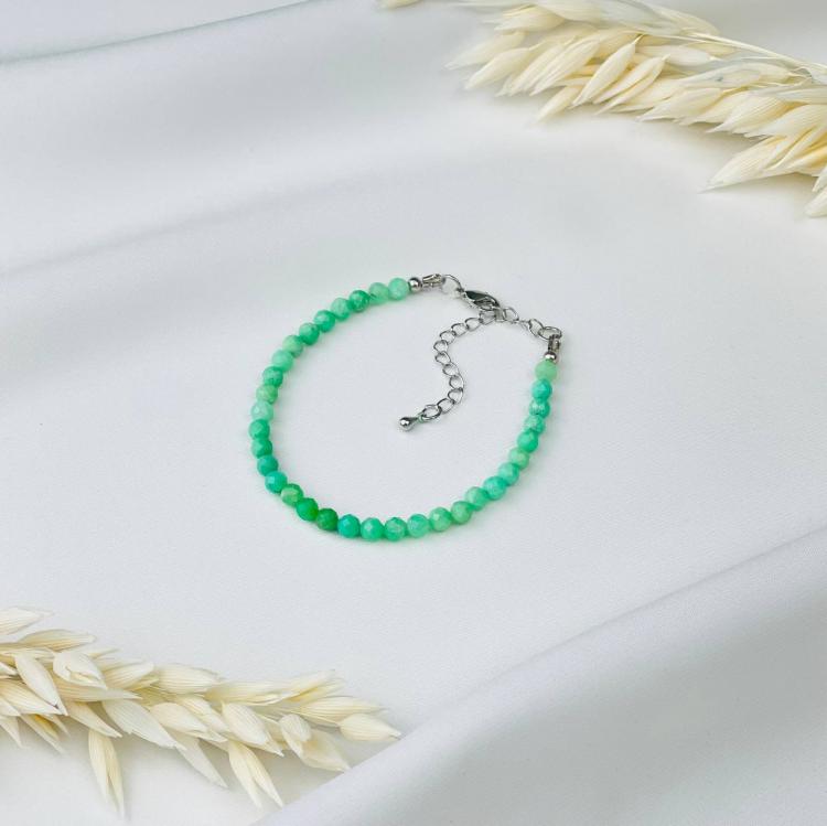 Браслет из Хризопраза (градиент), 17 см + – 18,5 см +, 4,5 мм, граненый, Австралия