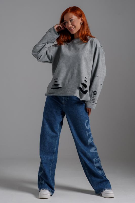 Свитшот станет отличным дополнением к вашему гардеробу благодаря своему унисекс дизайну. Теперь каждый может насладиться комфортом и стилем этой вещи без ограничений. Длинная толстовка имеет необработанный край, что добавляет ей небрежности и непринужденности. Безупречная посадка и оверсайз форма делают данную толстовку подходящей для размеровс 42 по 52. Также это позволяет использовать ее как в повседневном образе, так и в спортивном стиле.