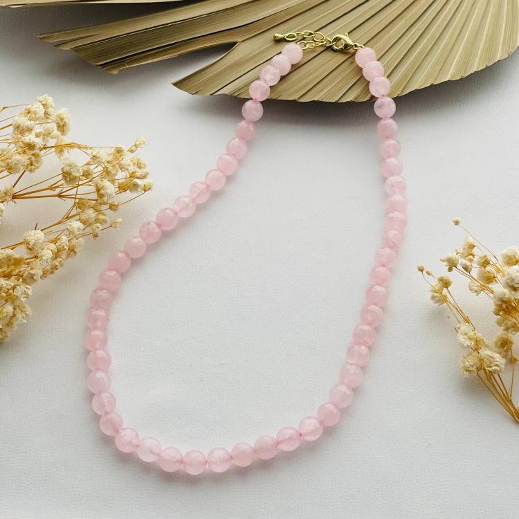 Бусы из Розового кварца (облагороженный), 45 см +, 8 мм, граненый, Бразилия