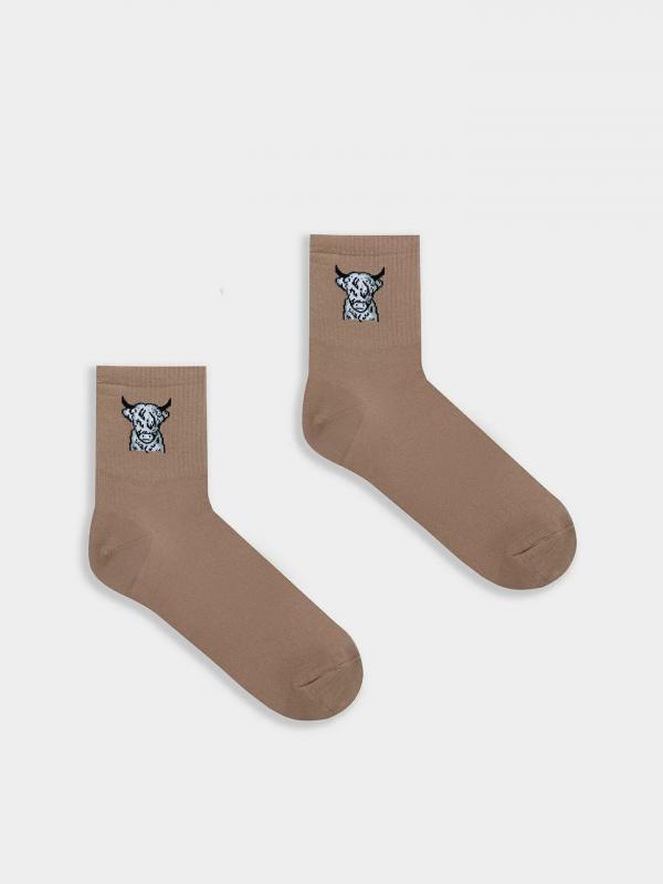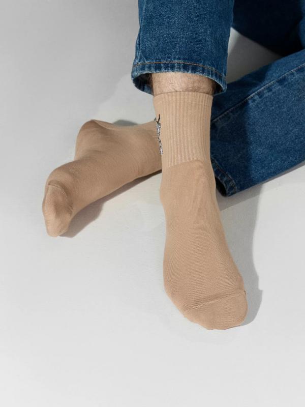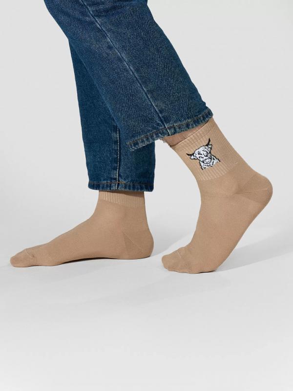 Рис.3086 Мужские носки, средней длины с резинкой на паголенке и рисунков в виде зубра.