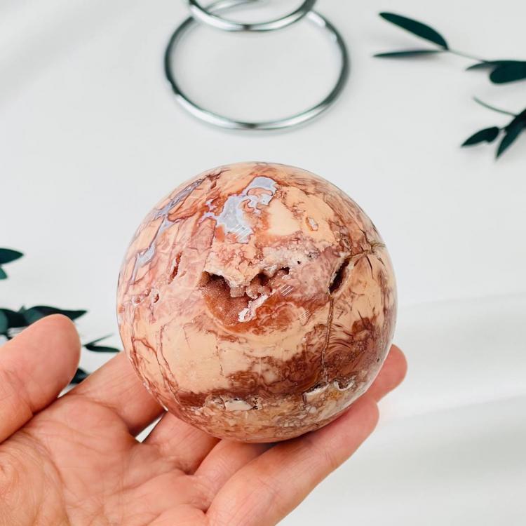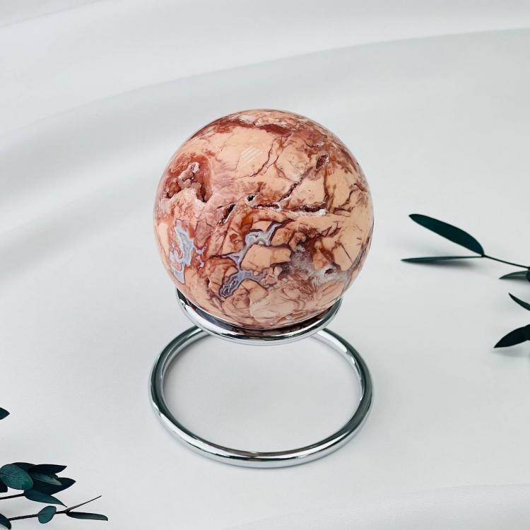 Шар из цветочного Агата на подставке, 65 мм, Мадагаскар