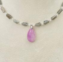 Колье из Лабрадора и Лунного камня с кулоном из Кунцита ручной работы