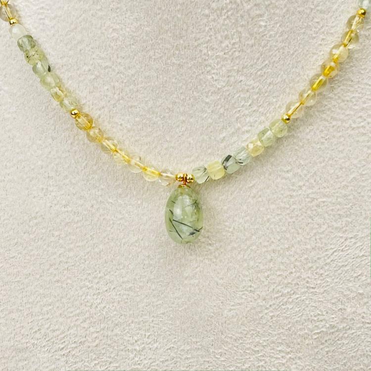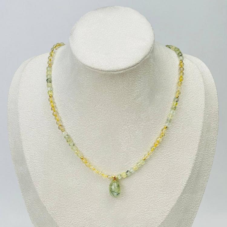 Колье из Пренита и Цитрина, 40 см + – 45 см +, 4,5 мм, гладкий/Граненый, Африка