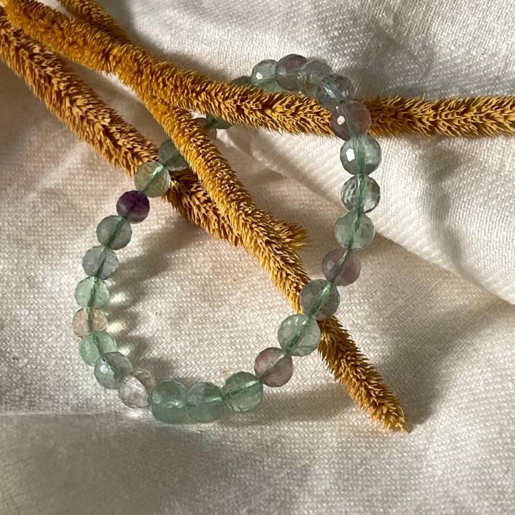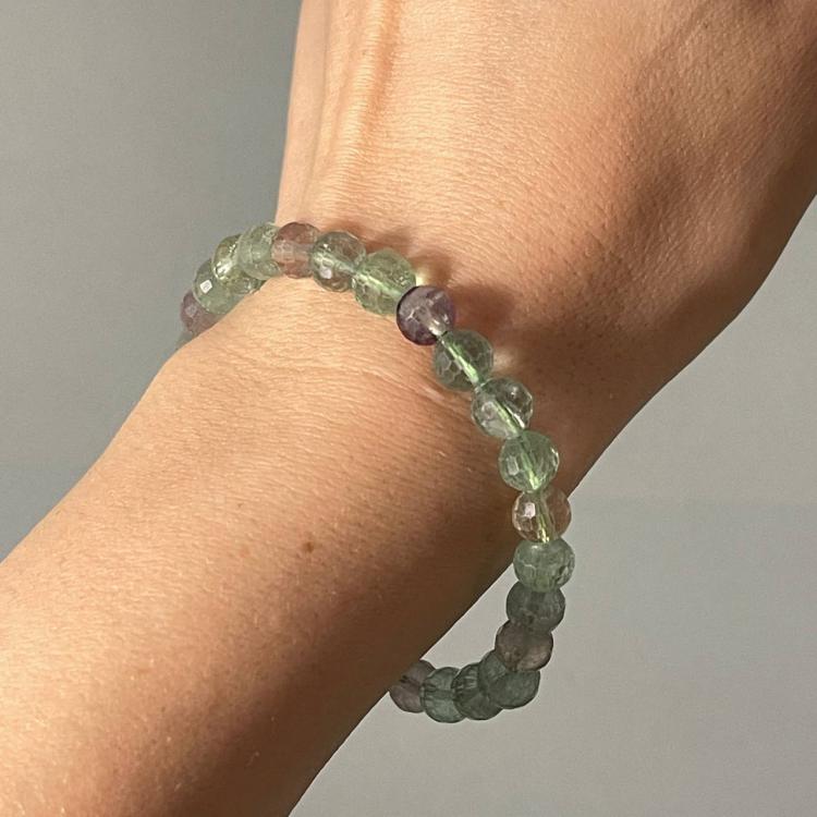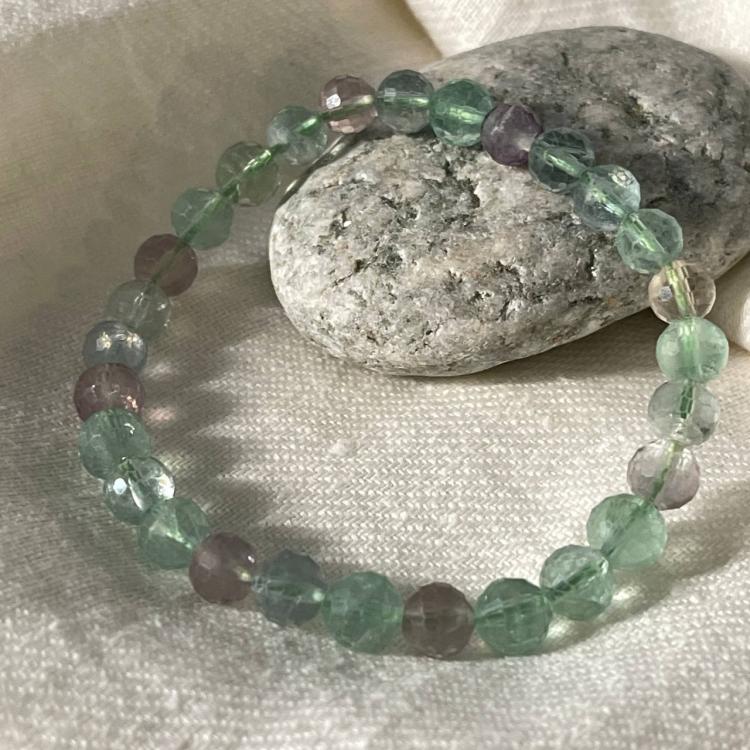 Браслет из Флюорита огранка, 18 см – 19 см, 6,5-7 мм, граненый, Китай