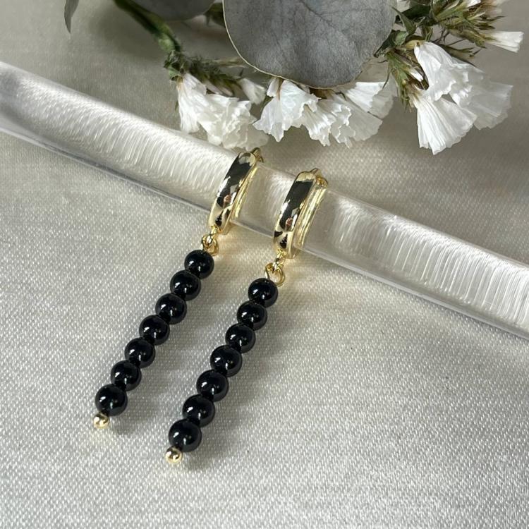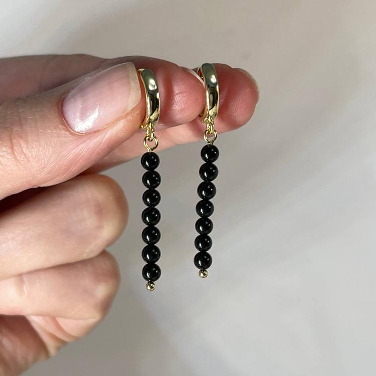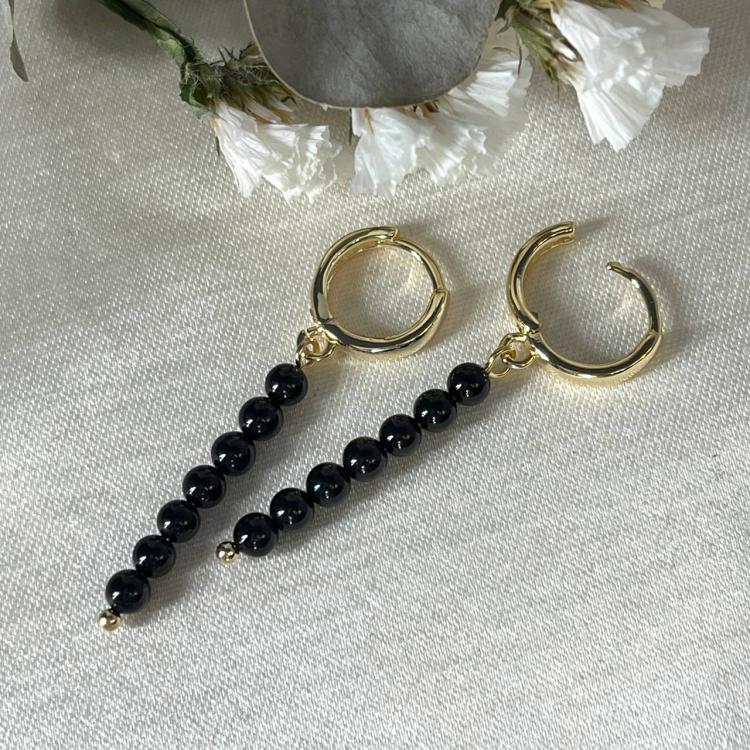 Серьги с Турмалином "Шерл", 3,5 мм , гладкий, кольцевой замок, Бразилия
