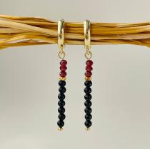 Серьги длинные из черного Турмалина и Граната, 3 мм, гладкий/Граненый, кольцевой замок, Бразилия