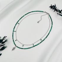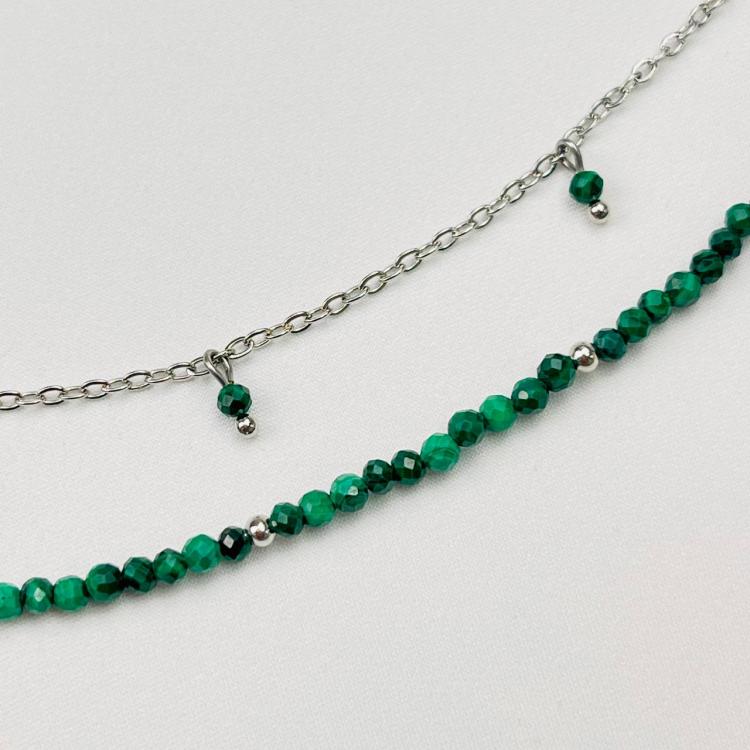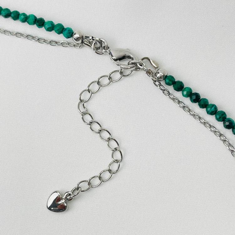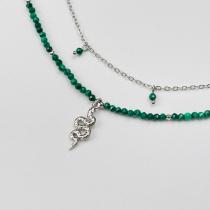Колье двойное из Малахита с подвеской "Змея", 38/42 см + – 42/45 см +, 3 мм, граненый, Африка