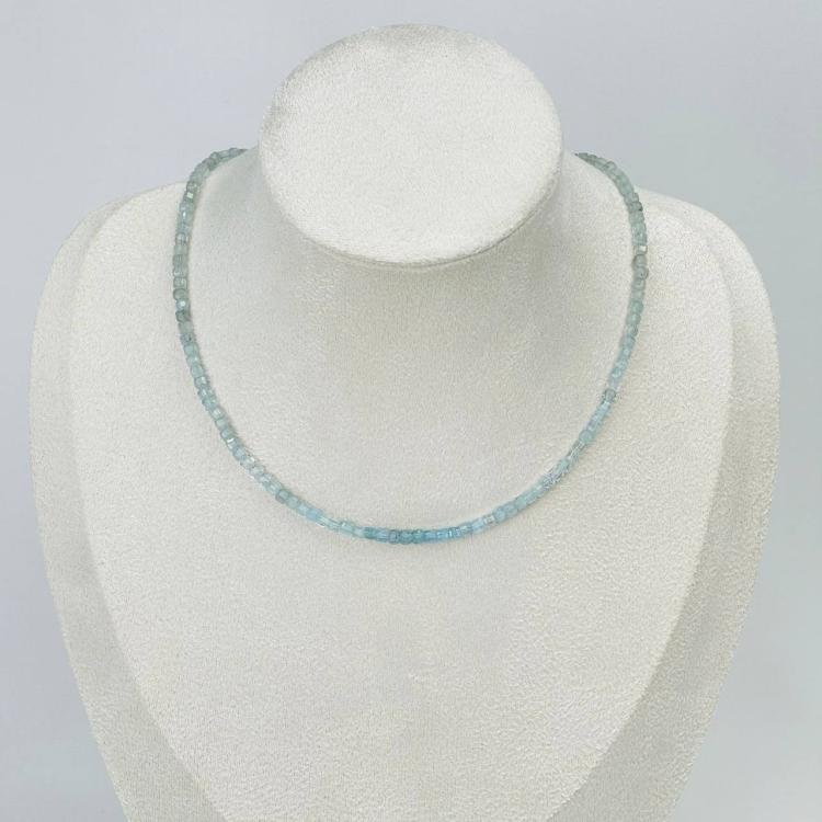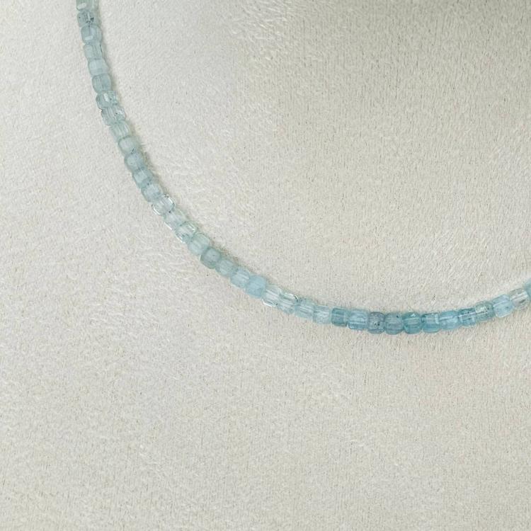 Колье из Аквамарина (градиент), 37 см + – 40 см +, граненый, Бразилия