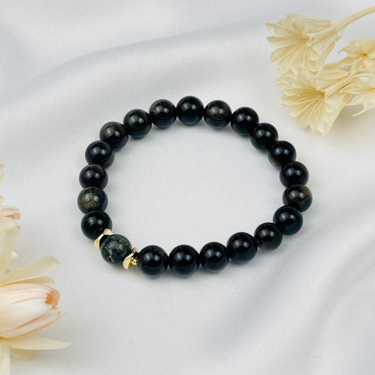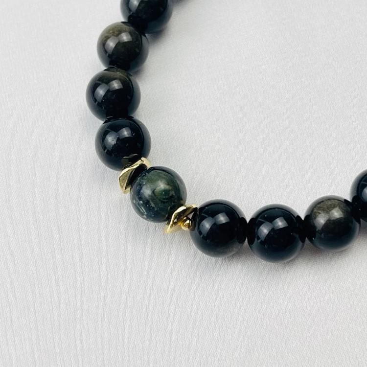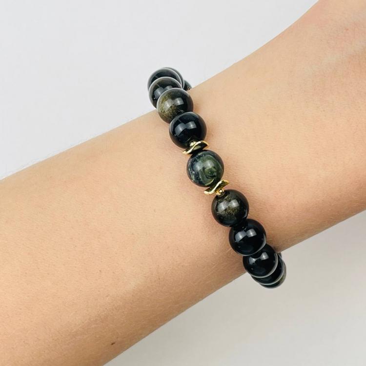 Браслет из золотистого Обсидиана и Яшмы "Камбаба", 17 см – 18 см, 8,5 мм, гладкий, Мексика