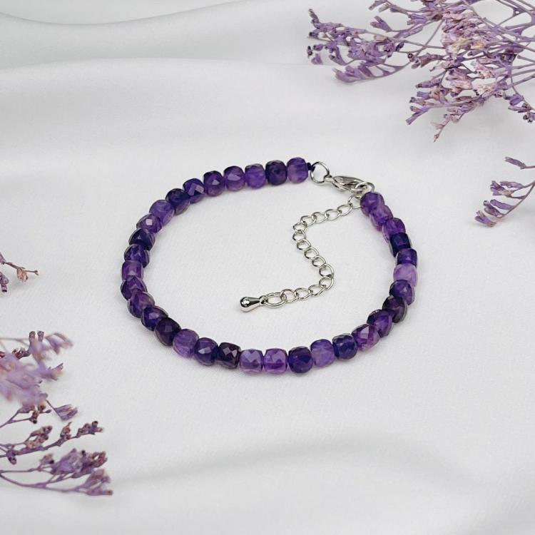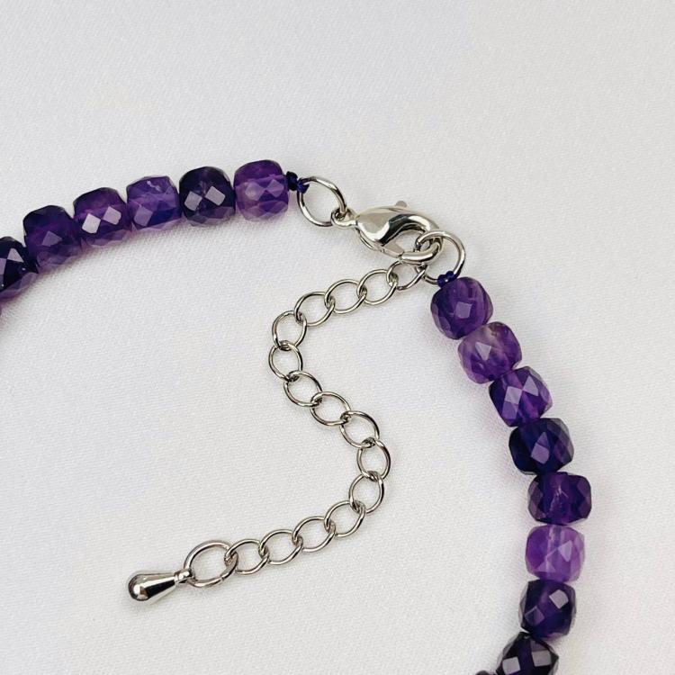 Браслет из Аметиста, 17 см + – 18,5 см +, граненый, Бразилия