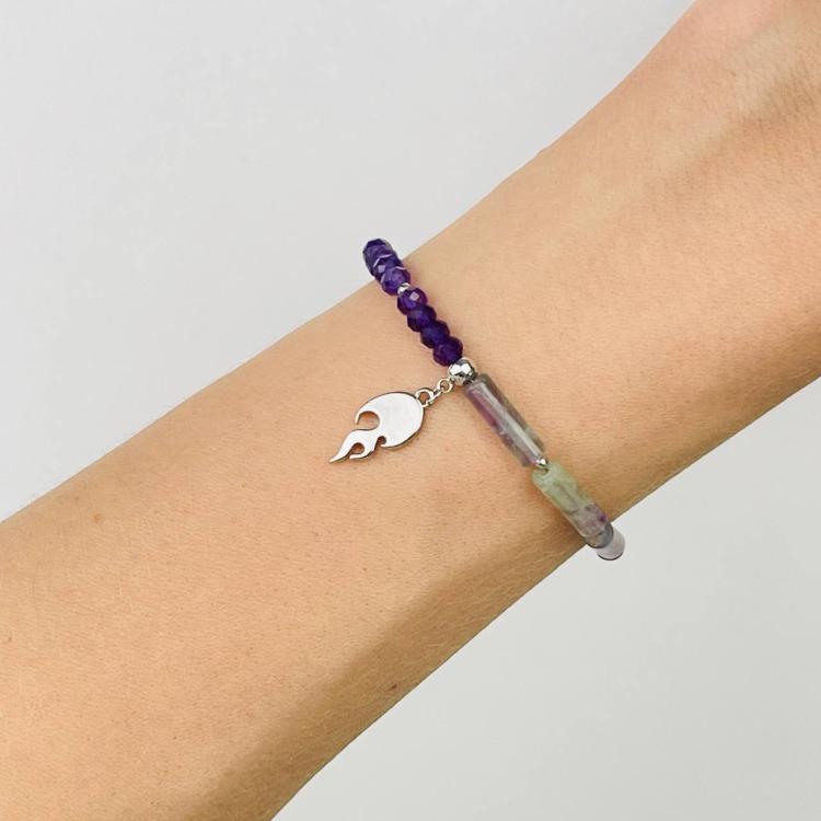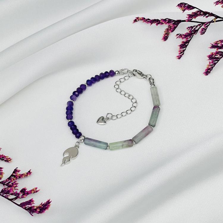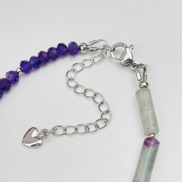 Браслет из Флюорита и Аметиста с подвеской, 16,5 см + – 18,5 см +, гладкий/Граненый, Китай