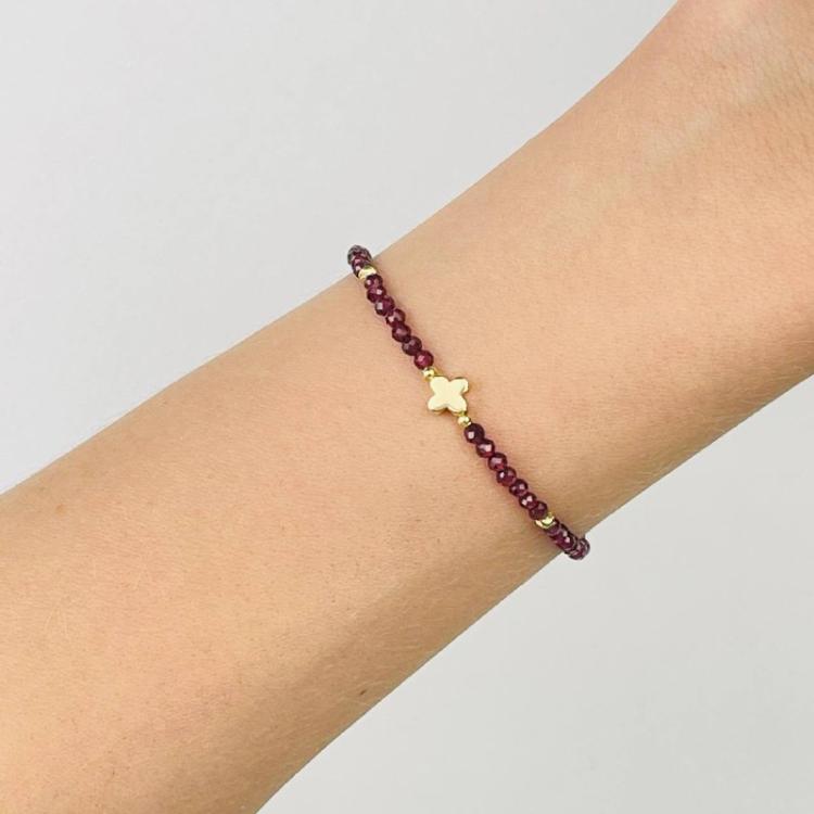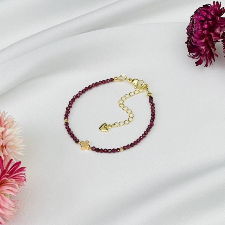 Браслет со вставкой из Граната, 16,5 см + – 18 см +, 2,5 мм, граненый, Индия