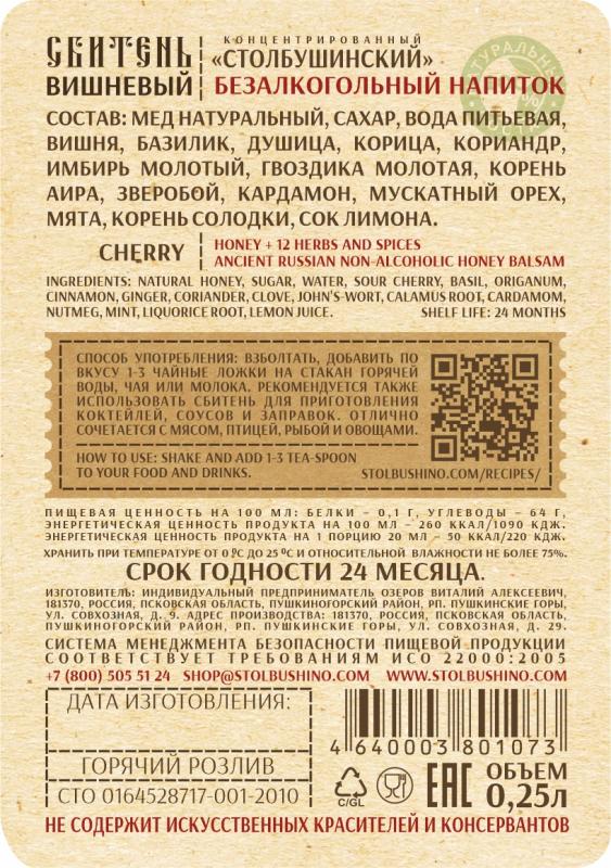 Столбушинский продукт - производство натуральных продуктов питания расположенное в Пушкинских горах Псковской области. Все продукты мы изготавливаем по старинным русским рецептам из экологически чистых продуктов для тех, кто ценит здоровье и вкусные лакомства. В нашем ассортименте более более десятка видов сбитня, мед, травяные чаи, орехи и цукаты, варенья, звары, соки и подарочные наборы на любой вкус! Столбушино - возрождаем традиции русских напитков и угощений с 2009 года.