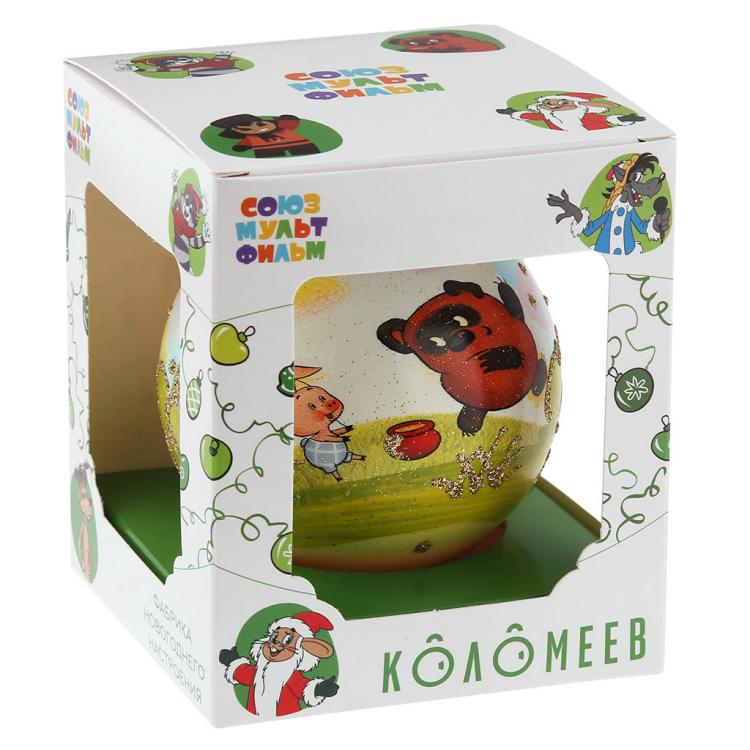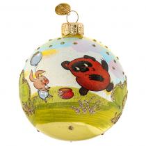 Елочная игрушка шар стеклянная "Винни-Пух 2" д8см, ручная художественная роспись, подарочная упаковка (Россия)