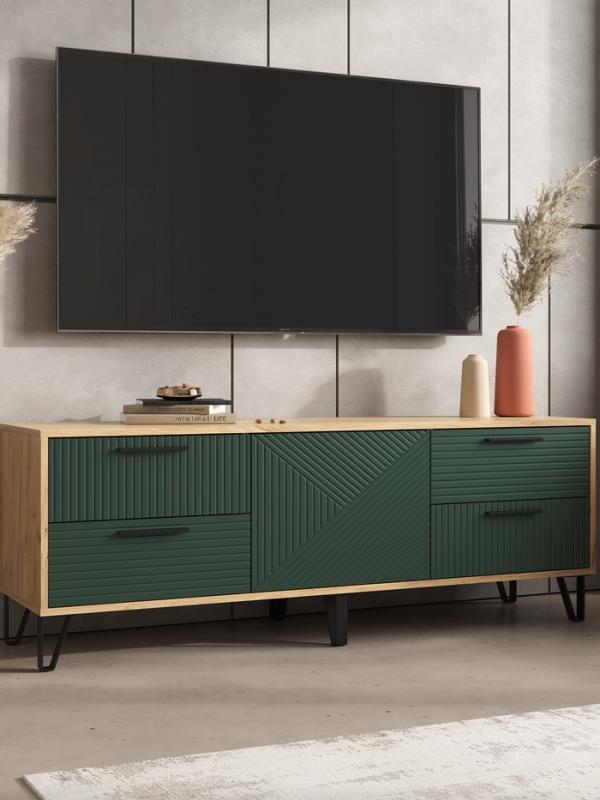 Тумба под ТВ «Флэш», 1502×426×542 мм, цвет браш мени грин/дуб крафт