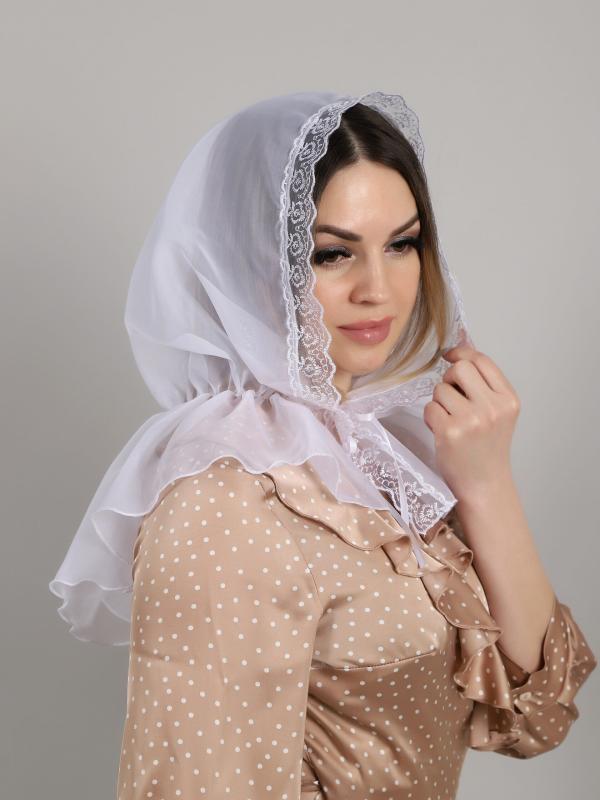 Платок для храма женский из шифона и гипюра идеально подходит для посещения православной церкви, включая праздники и торжества, такие как крещение, венчание, Рождество и Пасху. Мягкая воздушная ткань с кружевной отделкой придает образу изящную грациозность и аккуратно прикрывает голову и плечи женщины или девушки в храме. Ниспадающий фасон - платок белый на голову хорошо удерживается завязками или тесьмой-кулиской, что делает ношение удобным при любой прическе. В целом эта накидка сочетает комфорт и строгость внешнего вида — она не мешает сосредоточиться на молитве во время службы и подчеркивает уважительное отношение к традициям Православия. Используемые материалы высокого качества позволяют долго сохранять первоначальный вид без потери мягкости ткани.